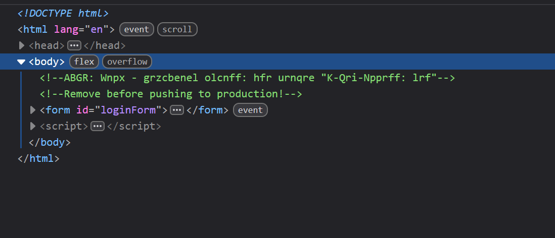 From Hint1, it becomes clear that the developers may have left a hidden note inside the source code. To investigate further, I opened the HTML source using my browser’s developer tools and found the following comment:
